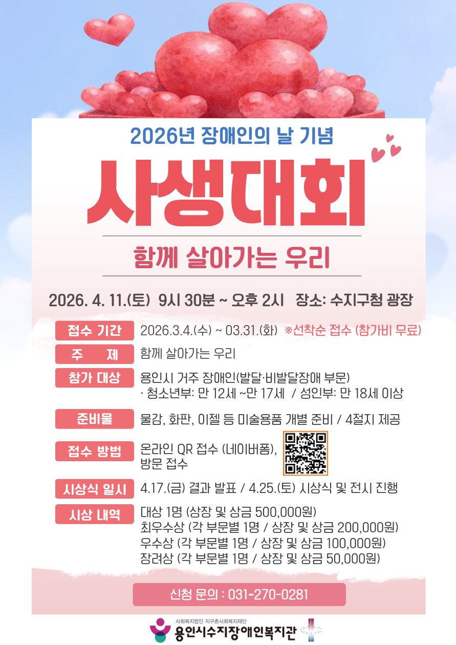 2026-04-11(토) ~ 2026-04-11(토) 장소 : 수지구청 광장 주관 : 용인시수지장애인복지관