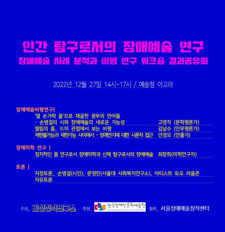 인간 탐구로서의 장애예술 연구 - 장애예술 사례 분석과 비평 연구 워크숍 결과공유회