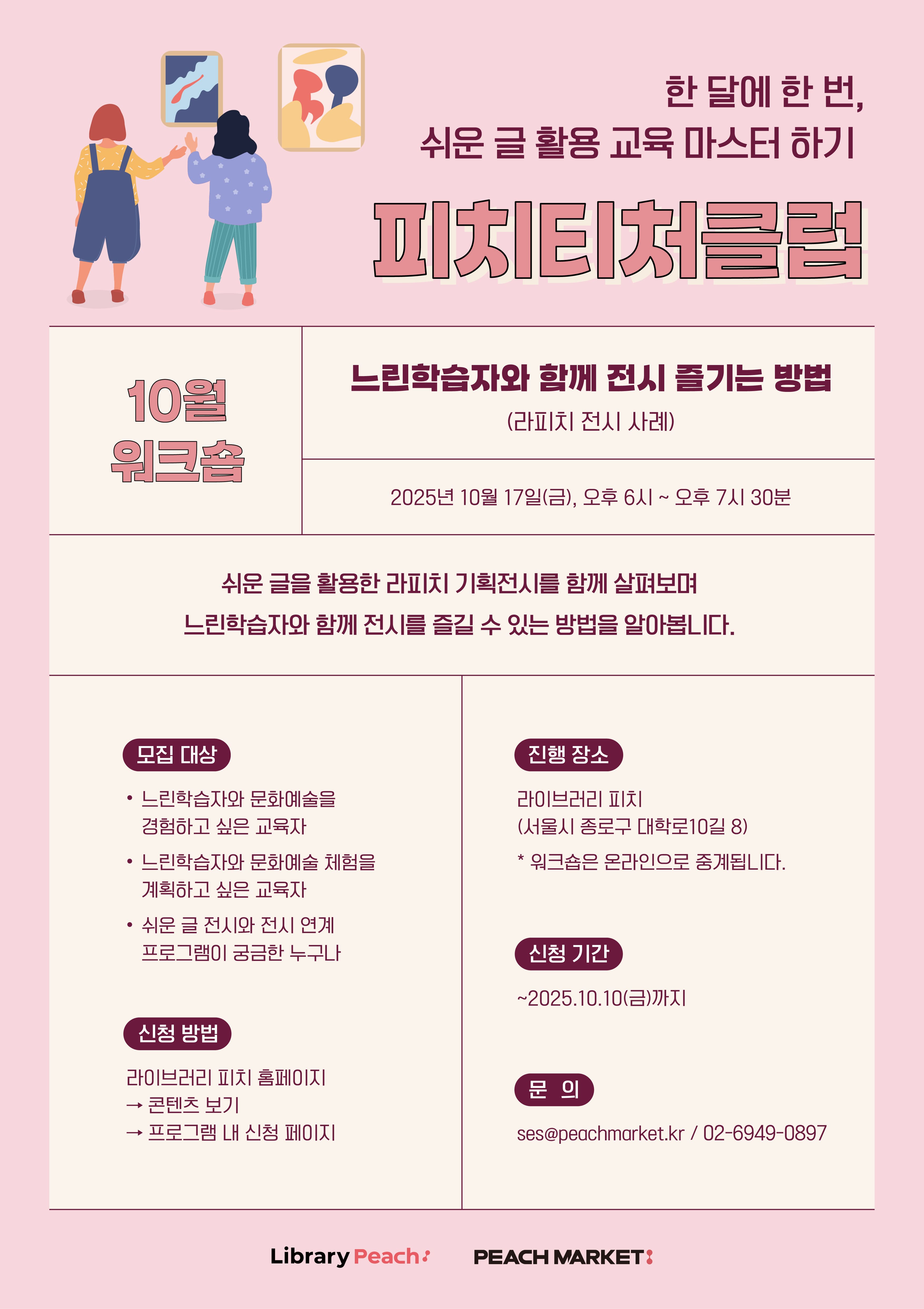 피치티처클럽 10월 워크숍: 느린학습자와 함께 전시 즐기는 방법