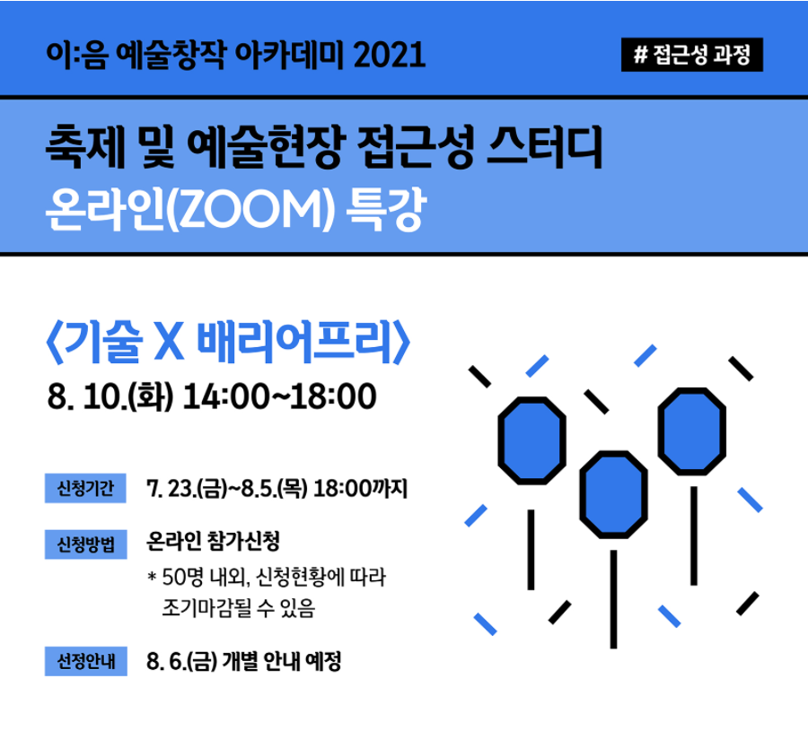 [이:음 예술창작 아카데미 2021 #접근성 과정] 축제 및 예술현장 접근성 스터디 온라인(ZOOM) 특강 신청안내