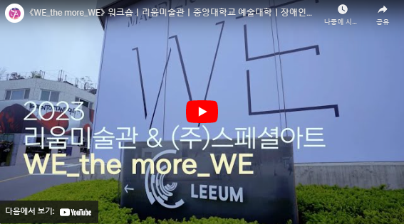 ‘장애 예술’의 정의는 무엇일까. 물론 장애 감수성, 장애 정체성도 중요하지만 더는 편견, 장애를 만들어내는 환경, 장애 인식개선 등의 소재나 분노와 저항만이 장애 예술의 목적이 되지 않는다. 최근 장애 예술은 ‘나’라는 정체성 자체를 그대로 자긍심이나 자존감으로 승화하며 문화예술 장르의 범용성에 대하여 생각하게 한다. 사회적 소외계층이나 소수자에게는 더 많은 복지와 혜택이 가야 하는 것이 맞다. 그러나 문화예술 장르에서 차별은 둔다면 그것은 배려가 아닌 예술을 경계 짓는 행위가 될 것이다. 이러한 생각과 관점을 어떠한 예술의 과정으로 풀어낼 것인가에 대한 고민은 지속된다. 장애 당사자로서 배려받아야 하는 노동성 문제와 신체 차이, 그리고 여러 방법론에 대한 분류, 선별 말이다. 다양한 (비장애인) 작가들과의 협업은 그렇게 중요한 자료이자 작업이다.