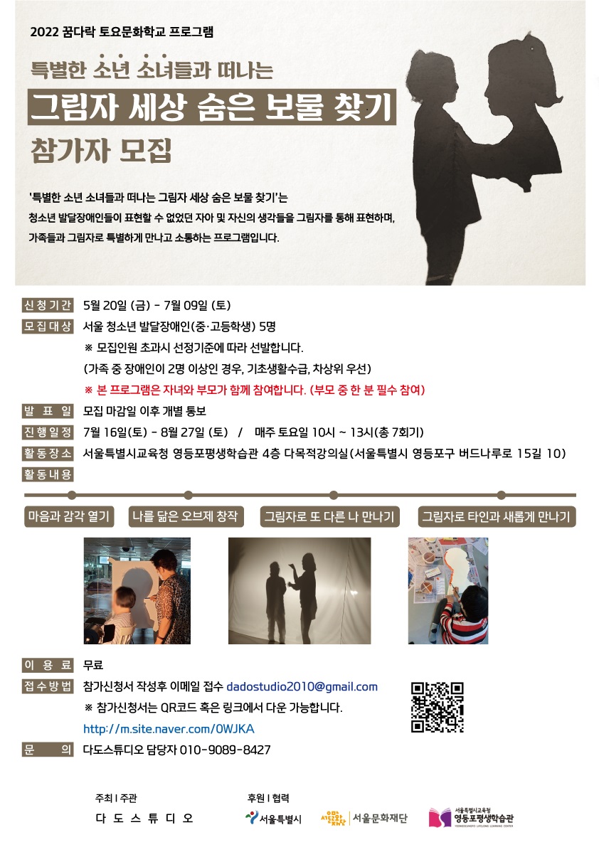 2022 꿈다락토요문화학교 ‘그림자 세상 숨은 보물 찾기’ 2기 참가자 모집