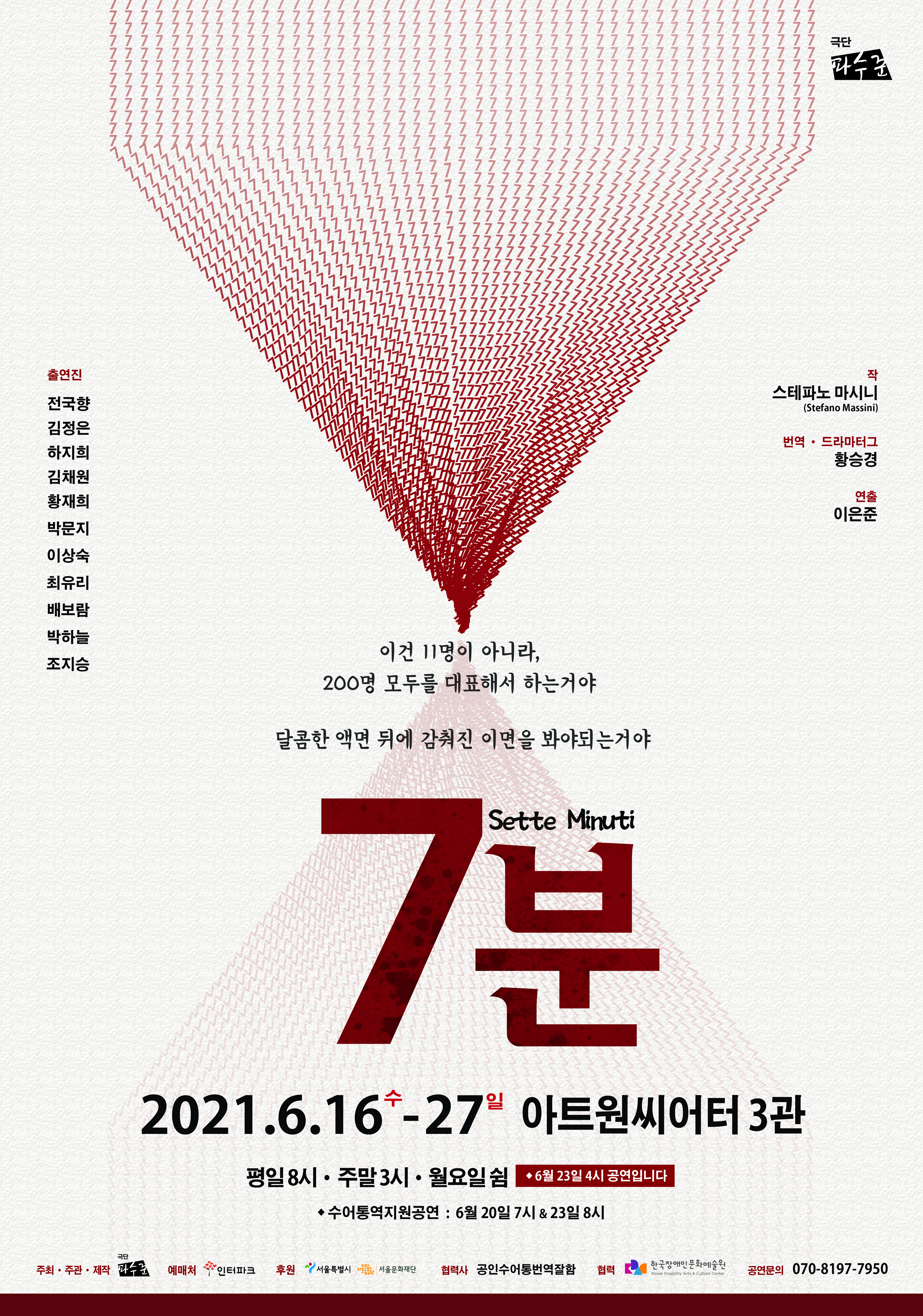 2021 극단 파수꾼 신작 연극 <7분> 수어통역 공연 안내