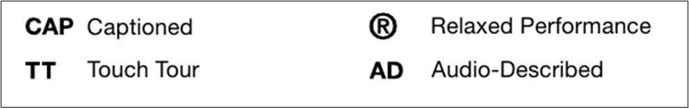 영국 국립극장 공연 안내 책자 내 장애인 공연 관람 서비스 안내 표
