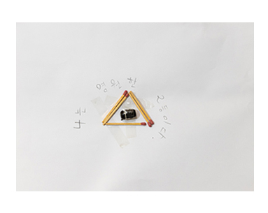 정말 솔직하고 명확하다. 평소에 콜라주, 드로잉 등 미술 작업도 하는데 <나는 영원한 2등> <잠자면 망한다> <난 영원히 지옥에 있다> <고통밖에 난 몰라>와 같이 일상의 불안, 초조함, 괴로움을 있는 그대로 표현하고, 볼펜 부속품이나 빨대, 클립, 비닐봉지, 심지어 발치한 이빨까지, 흔히 버려지는 재료를 사용하는 것이 인상적이다.